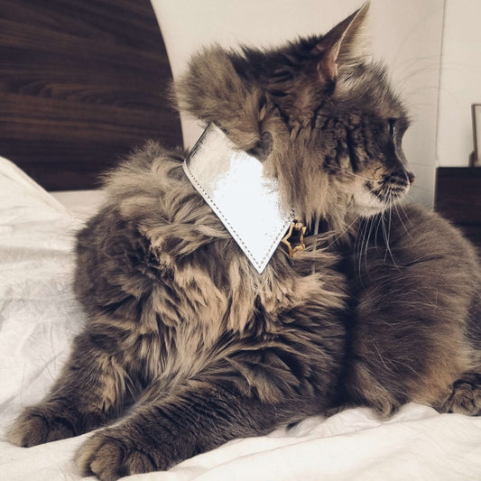 Col bijou en cuir craquelé argent pour animaux de compagnie - moderne et audacieux